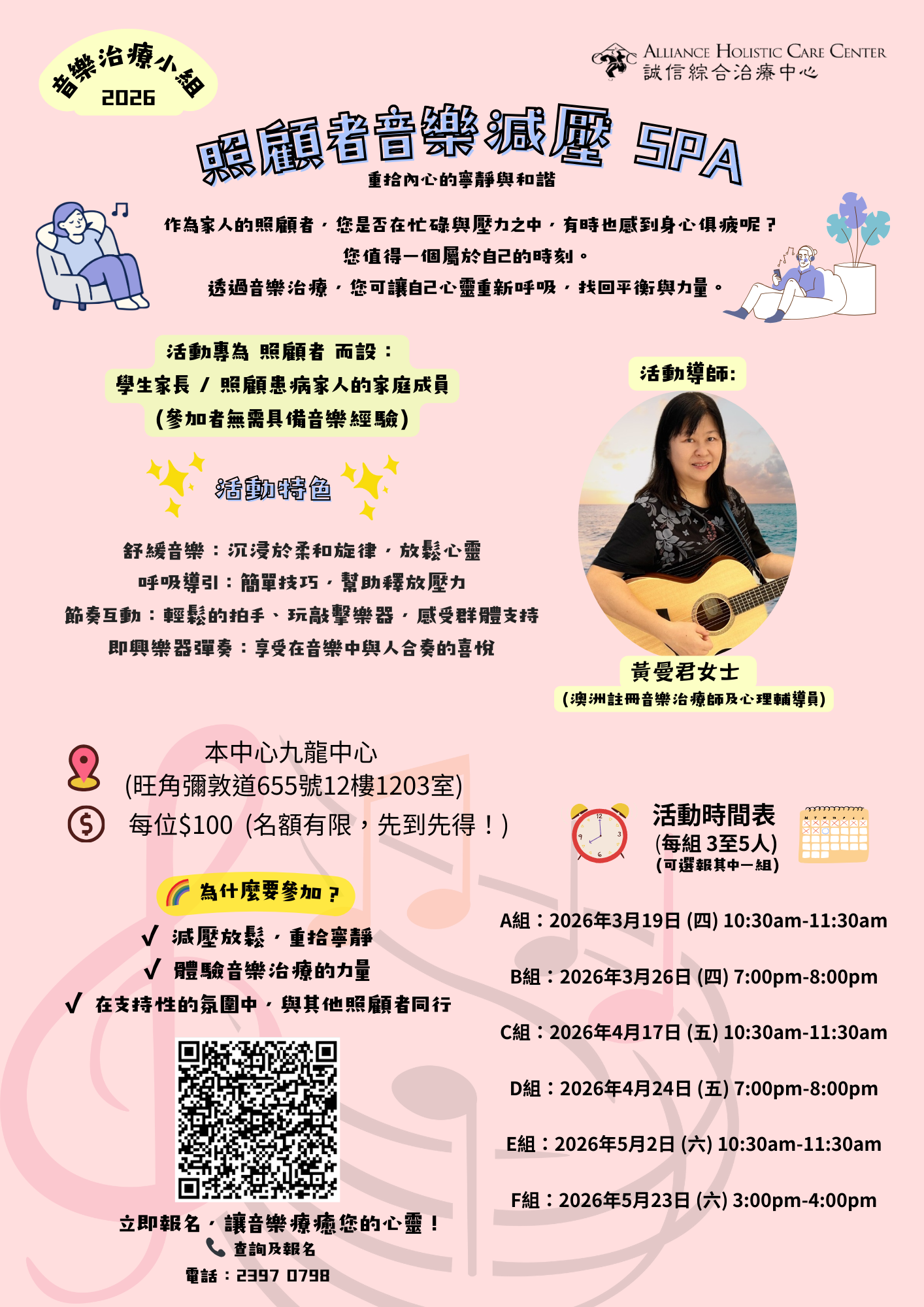 專為 照顧者 而設(參加者無需具備音樂經驗):